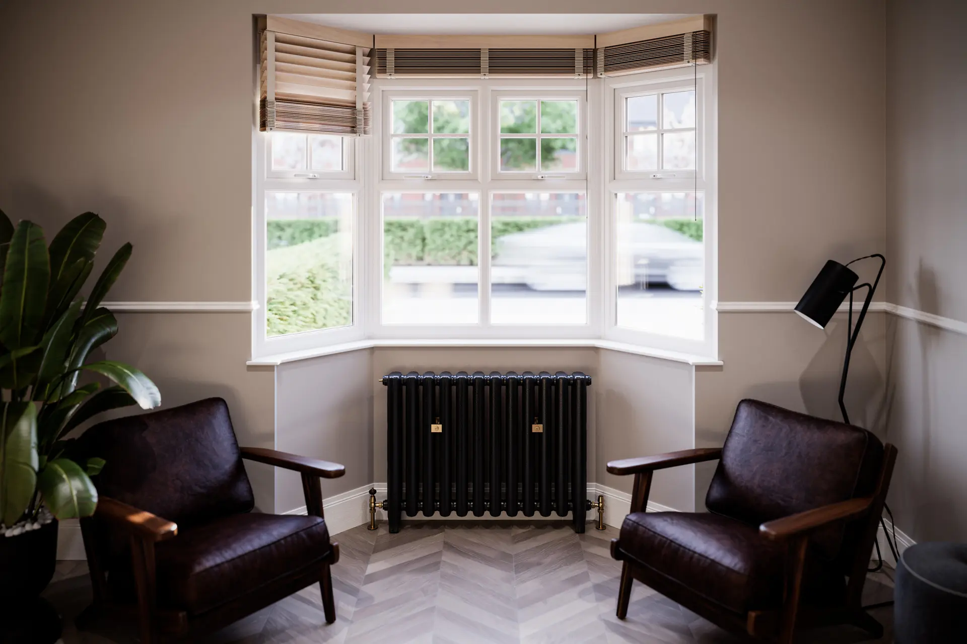 Our uPVC bow and bay windows utilise advanced multi-chambered profiles engineered for maximum structural integrity and thermal efficiency. The system includes reinforced bay poles and corner posts to ensure structural stability and load-bearing capacity where required.